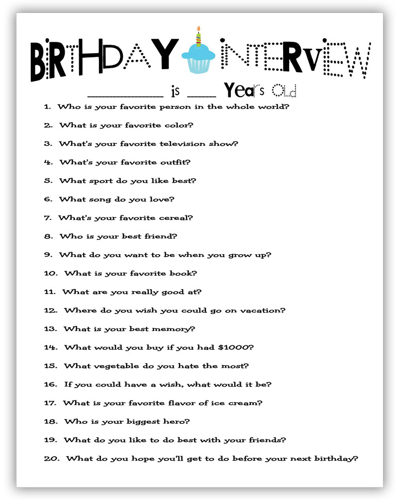 I’ve made a kids’ birthday interview printable in case you want to interview your kids and use the questions I use with my own kids.