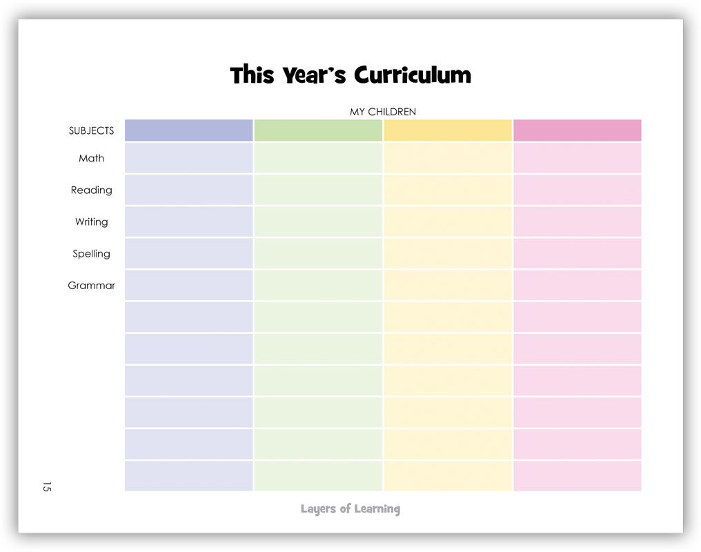 Next, you’ll write down which curriculum options you have chosen for each of your children.