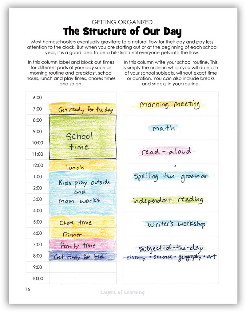 Both the schedule and the rhythm are a starting point to give you structure and a vision. They keep things orderly and prevent school from taking over your day or getting shoved out of it. But the schedule shouldn’t become a prison. Let it adjust and flow as you deal with real life.