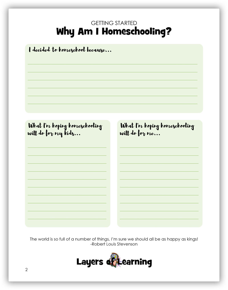 The packet starts off helping you define your why. Why are you homeschooling? Once you understand your reasons fully, you will do a better job planning and a better job staying on task and staying motivated.