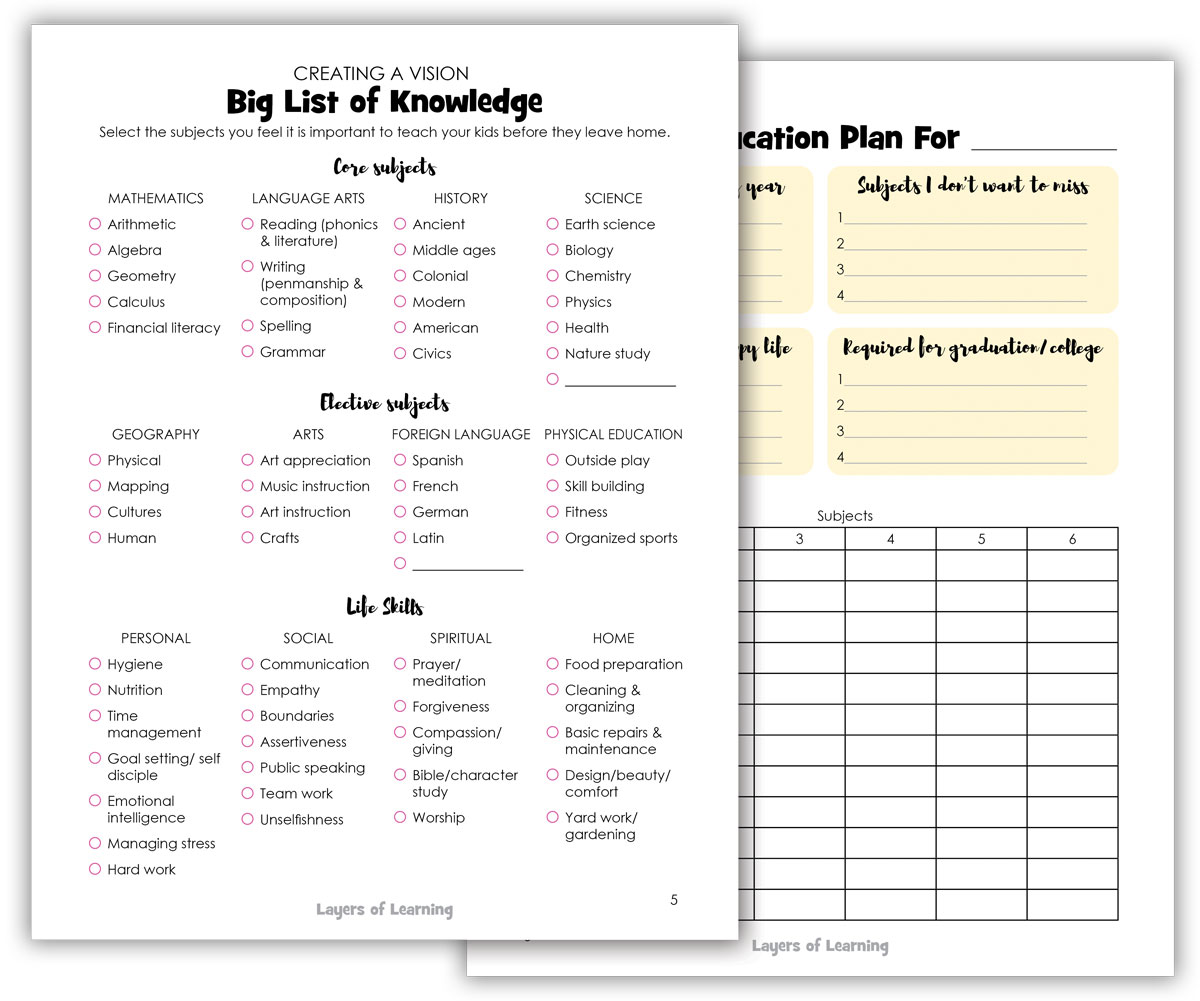 We have created the Homeschool Planning Packet to help you think through your homeschool, an exercise you will need to repeat once a year at least.