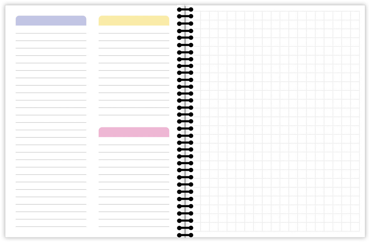 This planner is printed on premium paper with glossy card stock covers and a plastic coil binding. It is watercolor-themed, so expect color variation.