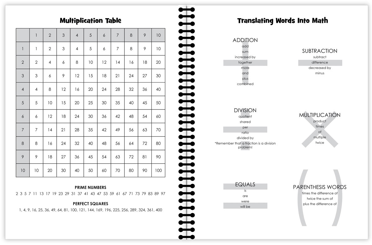 - Multiplication table, prime numbers to 97, and perfect squares to 400