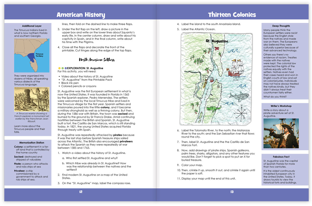 Besides the history lesson for the day, the units are lined with sidebars that direct you to discussions, books, famous people, interesting facts, writing ideas, and more.